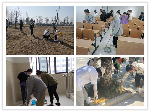主题团日活动内容丰富,形式多样。有的团支部在爱国卫生运动劳动实践区清扫路面、拔除杂草、捡拾垃圾,维护美丽整洁的校园环境;有的团支部在教室摆齐教室桌椅,擦拭黑板讲台、门、窗台,有的团支部在学校图书馆帮助工作人员整理自习室桌椅,打扫书架,为同学们营造干净舒适的学习环境;有的团支部在蚌埠市东海大道做交通安全引导员,在劳动中践行新时代共青团员的责任与担当;有的团支部结合当前疫情防控形势,在校园内开展疫情防控宣传。