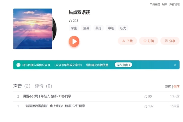“热点双语谈”栏目自开设以来,已收获师生一致好评。相信随着更多优质作品的呈现,该栏目会有更加广泛的受众。作为崭新的电台栏目,希望“热点双语谈”可以越办越好。(特约通讯员:张薇薇 审核:蔡为青 编辑:张威)