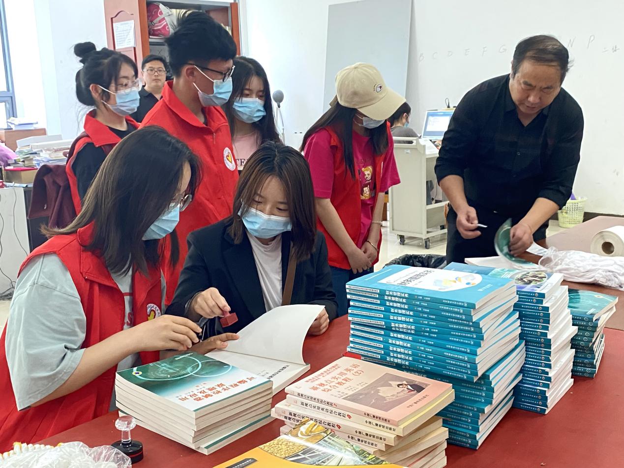为发挥“劳动育人”的独特功能,弘扬青年学子志愿服务精神,激励更多的同学参与到志愿服务中来,2022年5月4日图书馆党支部和学校青年志愿者协会联合开展了以“品书香、办实事”为主题的青年志愿者服务活动。校青年志愿者协会负责人何琳、研究生会权益部负责人公维勇带领学生志愿者前往图书馆采编部开展志愿服务工作,实际参与、切身体验图书加工流程。