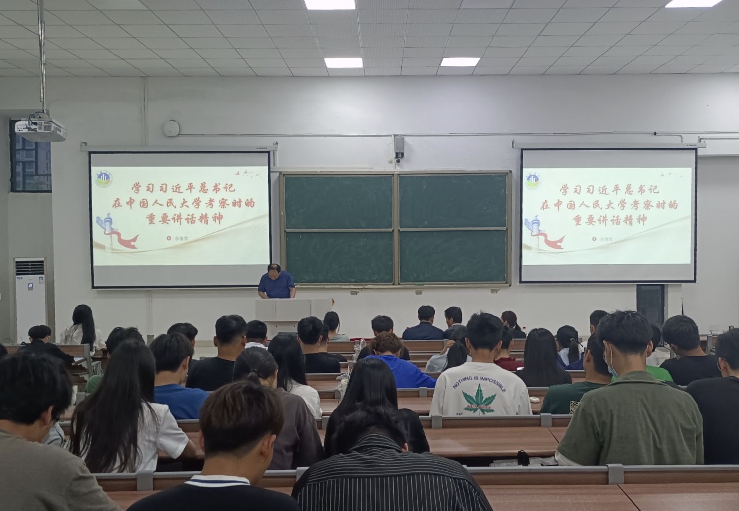 为深入学习贯彻落实习近平总书记考察中国人民大学重要讲话精神,进一步做好辅导员和思政课教师两支队伍结对共建工作。5月8日晚,建筑学院邀请马克思主义学院副教授余维发在致知楼A111开展了学习“习近平总书记考察中国人民大学重要讲话精神”的主题讲座。建筑学院非毕业班学生干部、党员及学生组织负责人参加,本次讲座由武辉老师主持。