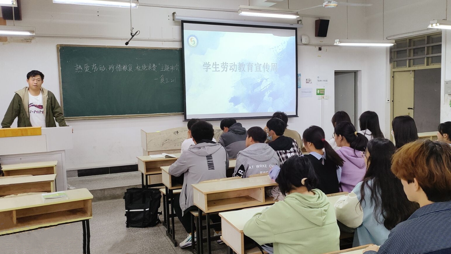 食品工程学院“快乐劳动 幸福成长”劳动教育宣传周活动之一:学院组织各班级开展“节水、节电、节粮”主题班会