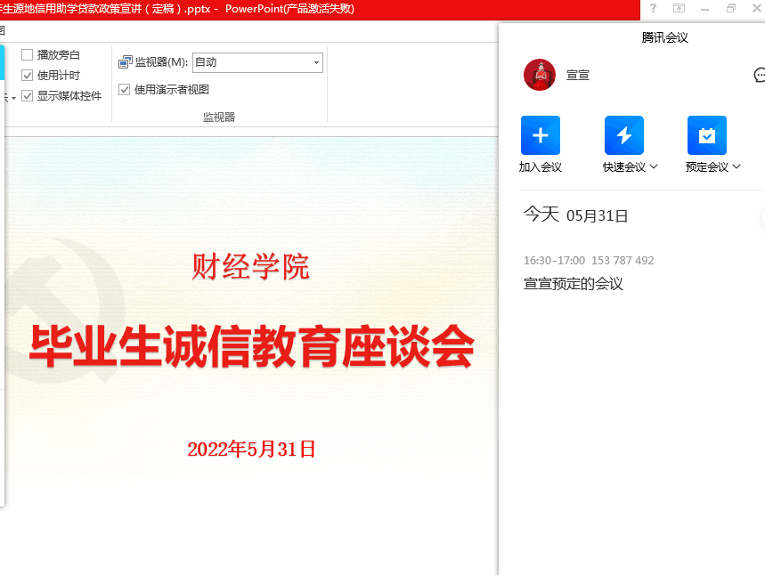5月31日,学院召开毕业生助学贷款诚信教育线上会议。学院资助联系人宣晶晶老师详细介绍了国家助学贷款毕业确认的流程,解读了还款协议签订的签订流程、贷款利息、还款期限、还款计划、还款方式以及信息变更等具体细节以及贷款逾期的后果,强化了贷款毕业生的诚信意识、法律意识和契约精神,帮助他们进一步系牢人生成长之扣。