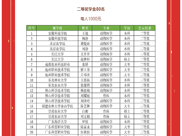 瑞鹏公益 新锐奖学金是由深圳市瑞鹏公益基金会发起的聚焦动物医学类专业的高校奖学金项目,旨在表扬孜孜不倦研修动物医学类专业的高校学子,提高动物医学类专业高校学子对小动物临床领域的认可度、热爱度和未来投入度,鼓励其积极实践、多元学习、关心公益。在刚结束的2021年瑞鹏公益 新锐奖学金评选活动中,动物科学学院动物医学183班王旭和杨静同学均获评瑞鹏公益 新锐二等奖学金。