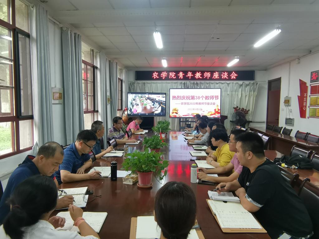 9月8日上午,在第38个教师节来临之际,为了解青年教师在工作和生活中存在的问题和困难,增进青年教师快速成长,农学院召开青年教师座谈会,会议采用线下和线上结合的形式进行,座谈会在热烈轻松的气氛中进行。学院党政领导、工会主席、教学秘书和近五年新进青年教师参加座谈,座谈会由农学院党委副书记、院长崔广荣主持。