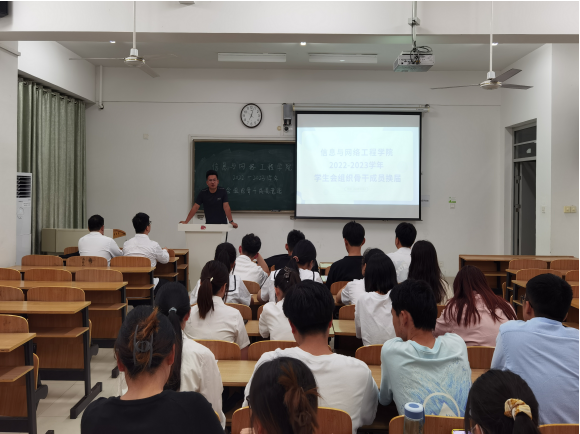 为进一步加强学生干部队伍建设,提高学生干部队伍服务意识。9月8日晚,信息与网络工程学院于致知楼A307召开学生会换届竞选大会。信息与网络工程学院学生会指导老师崔北坤、学生会全体成员参加本次会议,会议由崔北坤主持。
