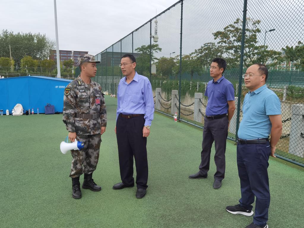 9月23日,电气与电子工程学院党委书记骆海邦,党委副书记、纪委书记尚磊,副院长国海,辅导员洪乃羽、于宏亮前往军训场地看望2022级军训学生。