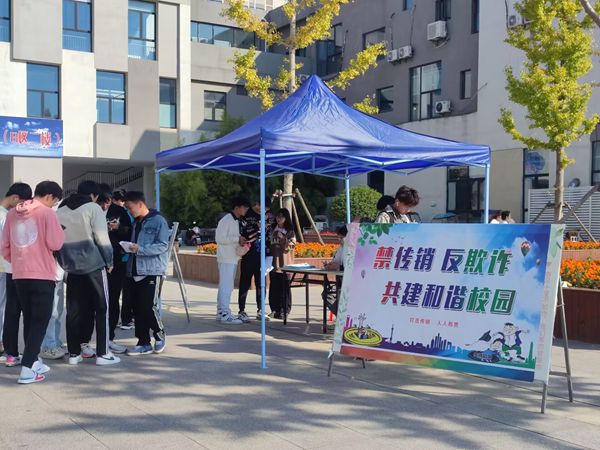 活动在知味园门前小广场举行。校学生自律委员会的同学们摆放展板,呼吁广大同学“拒绝传销,净化校园”,让广大学生了解传销战术,远离传销陷阱,提高同学们的反传销意识。在官方QQ发布倡议,积极宣传如何“禁传销,反诈骗”,提高广大同学们的防范意识。同时在食堂门口小广场开展防范传销签名活动,吸引了很多同学参与。很多同学积极响应校学生自律委员会的号召,给了校学生自律委员会很多积极反馈,并称坚决抵制传销。
