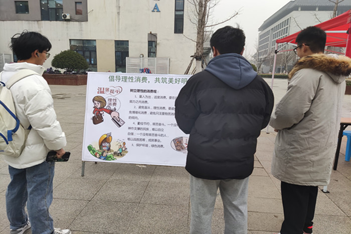 近年来,网络贷款助长了一些大学生的非理性消费行为。为帮助大学生树立正确消费观,12月10日,财经学院在知味园B座前小广场开展了“倡导理性消费,共筑美好明天”主题活动。