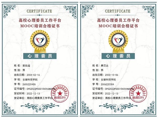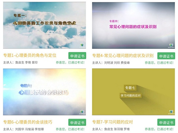 为切实做好大学生心理健康教育工作,提升班级心理委员朋辈心理辅导素质和能力,11月20日至12月12日,我校学生心理健康教育与咨询中心组织全校2022级班级心理委员及校、院心理委员联合会成员参加由全国21所高校的29位专家共同打造的心理委员标准化线上课程培训与考核。