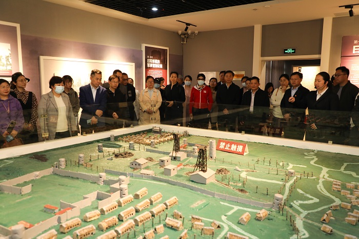 主题活动第一站,参观淮南“万人坑”教育馆,各委员与代表观看了教育片和实物展。