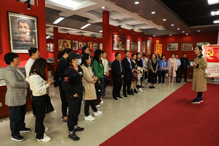 主题活动第三站,参观淮南师范学院党史教育馆。该馆用31个版本的《共产党宣言》、详细的长征路线地图、党和国家各个重要时期的文物等共计22000余件藏品生动地展现了中国共产党从新生到发展、从胜利走向辉煌的伟大进程。