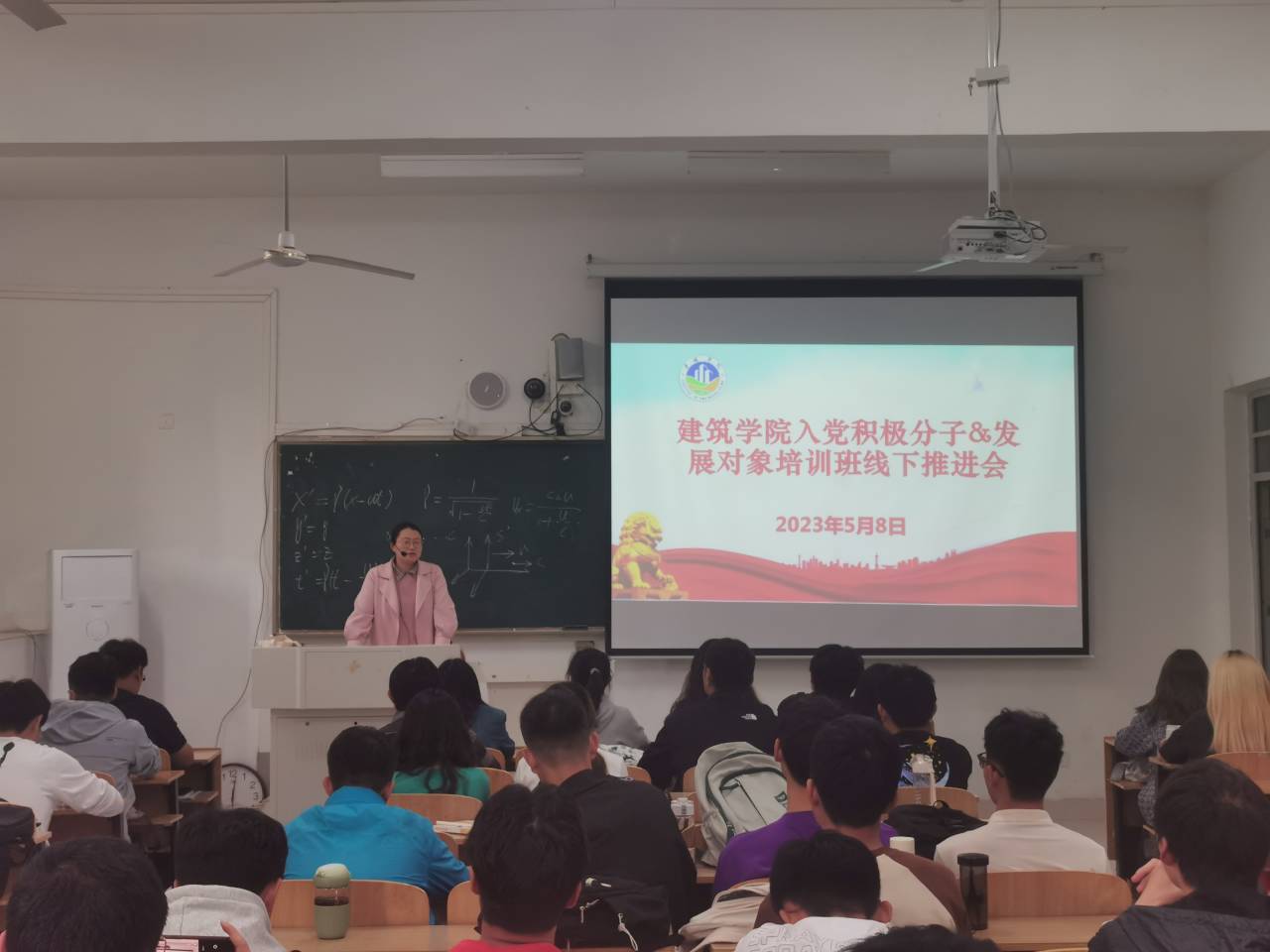 5月8日晚建筑学院在致知楼C108召开第58期入党积极分子、发展对象培训班线下推进会,会议由学院组织员吴婷婷主持,学院第58期入党积极分子、2023年上半年发展对象共100余人参加。