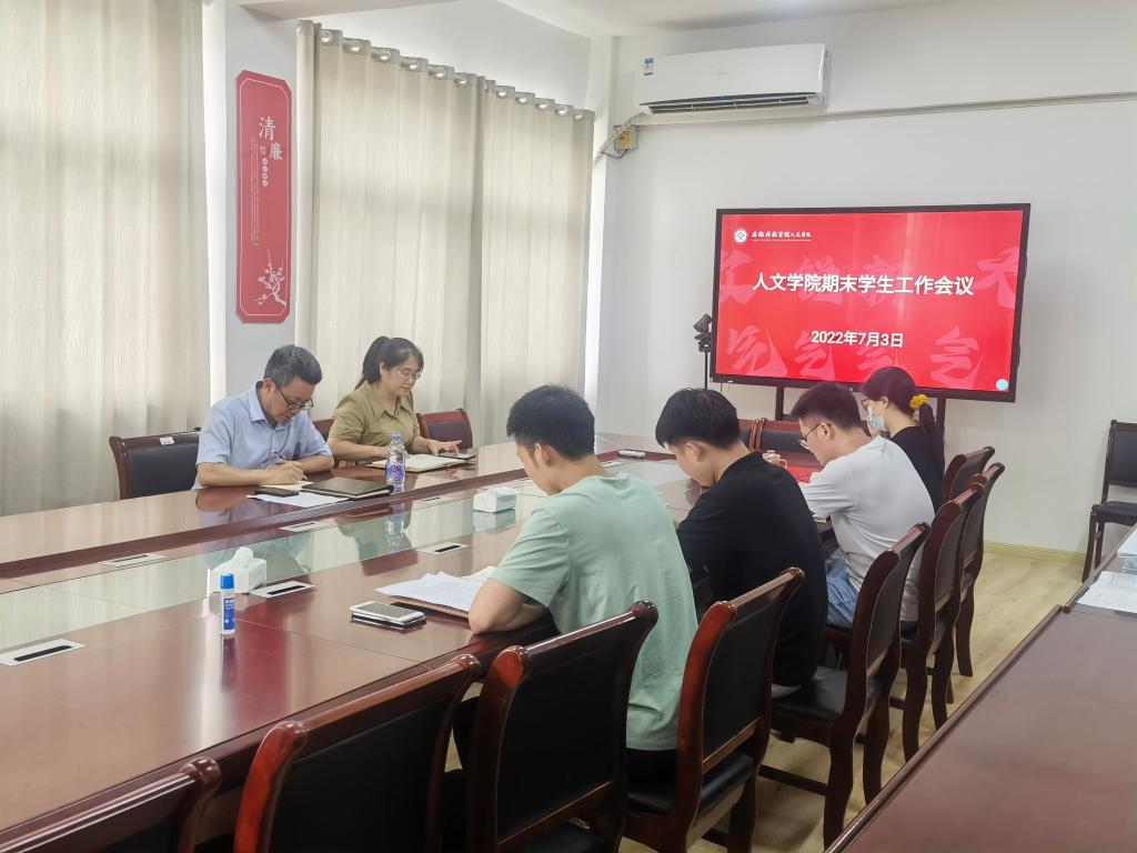 2023年7月3日下午,人文学院在学知楼324会议室召开2023年春季学期期末学生工作会议。会议由学院党委副书记李沙娜主持,正处级组织员张严政和全体辅导员参会。