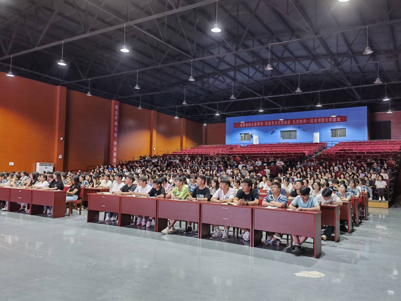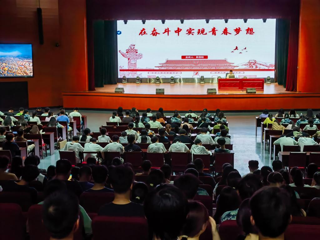 新学年、新目标,新阶段、新征程。为深入学习领会习近平总书记在庆祝中国共产主义青年团成立100周年大会上的重要讲话和习近平总书记给安徽省潜山野寨中学考取军校同学回信精神,引导2023级新同学更快更好地融入新环境,感召青年、激励青年、引领青年,9月15日晚,人文学院在大学生活动中心举办“初心使命青春人文”主题团课教育讲座,讲座由辅导员焦雪松主讲,2023级全体新生参加。