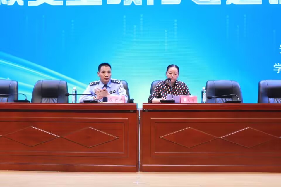 为进一步提高新生安全防范意识,构建平安校园、和谐校园。9月24日晚7点,信息与网络工程学院在东辅楼报告厅举办2023级新生安全教育专题讲座。会议由学院党委副书记韦乃学主持,蚌埠市公安局龙子湖分局派出所所长陈兴武担任本次讲座主讲,学院2023级新生参加此次会议。