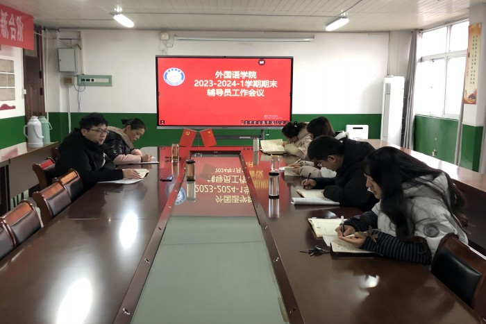为全面总结2023年的学生工作经验,谋划2024年重点工作任务,1月19日上午,外国语学院在学院会议室召开期末辅导员工作会议。学院党委书记蔡为青和全体专职辅导员参加会议,会议由党委副书记张海亮主持。