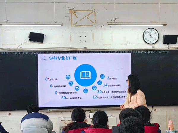 1月18日,邢雨洁带领团队一起回到母校涡阳县第一中学,借助PPT宣讲和互动交流等多种方式,向高中师生全方位介绍了博业体育(中国)官方网站-登录入口的办学实力、校园环境、文化活动、优秀校友、发展成果等,传播安科声音,展现安科学子风采,扩大安科社会影响力,鼓励广大优秀学子报考安科。