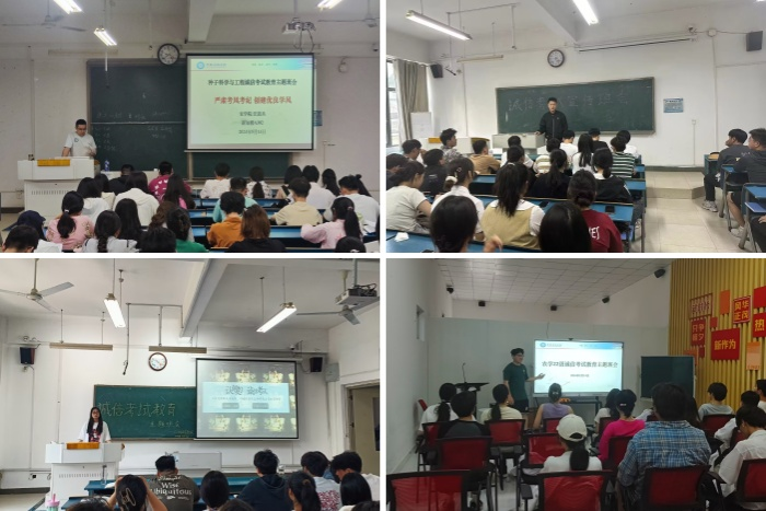 会上,各班辅导员及学习委员带领班级成员认真学习了《中华人民共和国教育法》《中华人民共和国刑法(修正案九)》《国家教育考试违规处理办法》《博业体育(中国)官方网站-登录入口学生手册》中有关考风考纪的内容。向学生传达了诚信考试的重要性和必要性,让学生知悉考试违纪、考试作弊的严重后果,希望同学们严守考风考纪,认真备考,诚信考试。会后,同学们签订了诚信承诺书,有效强化了考生诚信考试意识。