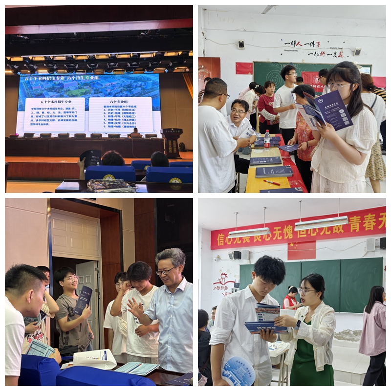 为进一步提升学校知名度和社会美誉度,宣讲2025年高考招生政策,为广大考生精准填报志愿提供优质服务,提高2025级本科生源质量,6月26日至28日,由人文学院党委书记、院长李晓东、正处级组织员张严政等4人组成的招生咨询宣讲工作组,前往阜阳市城郊中学、阜阳市第十中学、临泉一中、临泉二中、界首中学、颍上一中、阜阳市第一中学颍上分校、颍上二中等8所高中开展招生咨询宣讲,受到相关学校领导的热情接待和考生及家长的热烈欢迎。