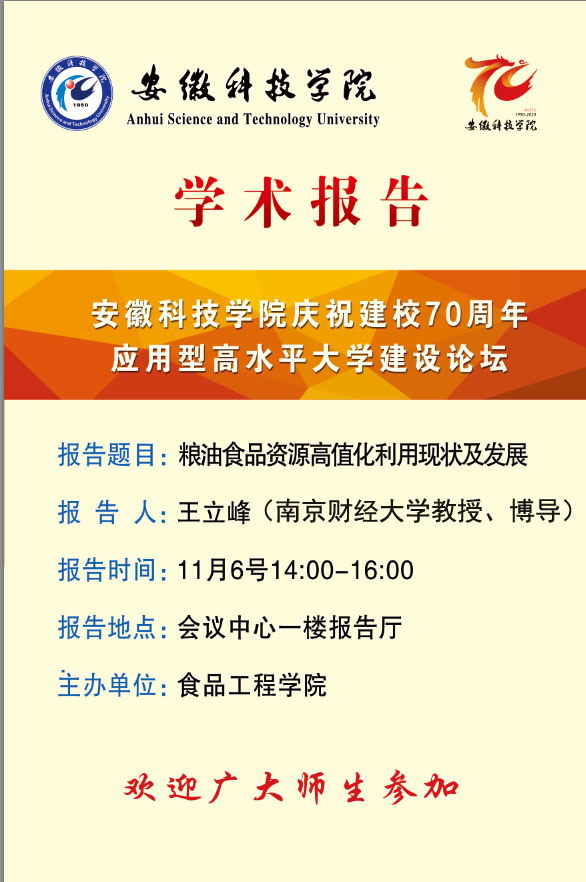 庆祝建校70周年学术报告--粮油食品资源高值化利用现状及发展