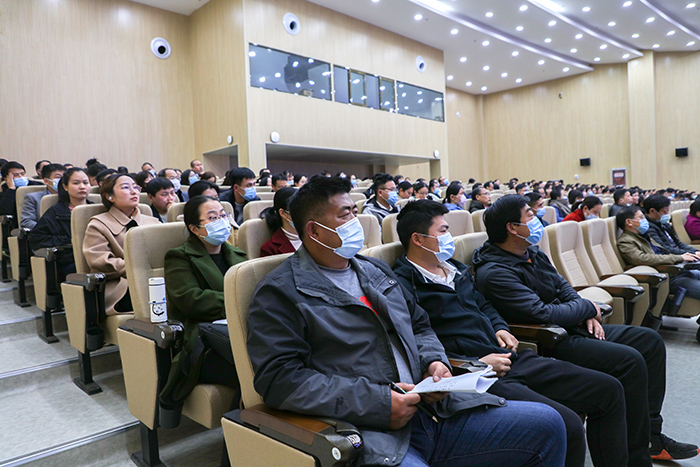 学校教学院部全体教职工、非教学单位分管意识形态(网络安全和信息化、二级网站建设)的领导,秘书、特约通讯员、网络信息安全管理员参加会议。(摄影:陈宝 审核:姚文均 编辑:李刚)