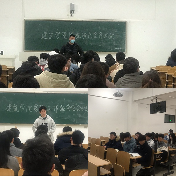 为进一步推进网络易班建设,做好建筑学院易班网络平台推广工作,调动学生使用易班的积极性。3月6日晚,建筑学院在致知楼C108举行新学期易班班长全体大会。建筑学院易班工作站指导教师阮怀思、建筑学院易班工作站站长李宽亮、建筑学院易班工作站全体工作人员以及建筑学院2018、2019、2020级全体易班班长参加了会议,会议由阮怀思主持。