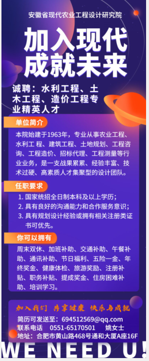为进一步帮助2022届未就业毕业生尽快找到工作,4月27日建筑学院副院长张伟和安徽省现代农业工程设计研究院姚女士进行了深入的线上沟通和交流,了解了该单位的简介、任职要求、福利待遇等方面信息。