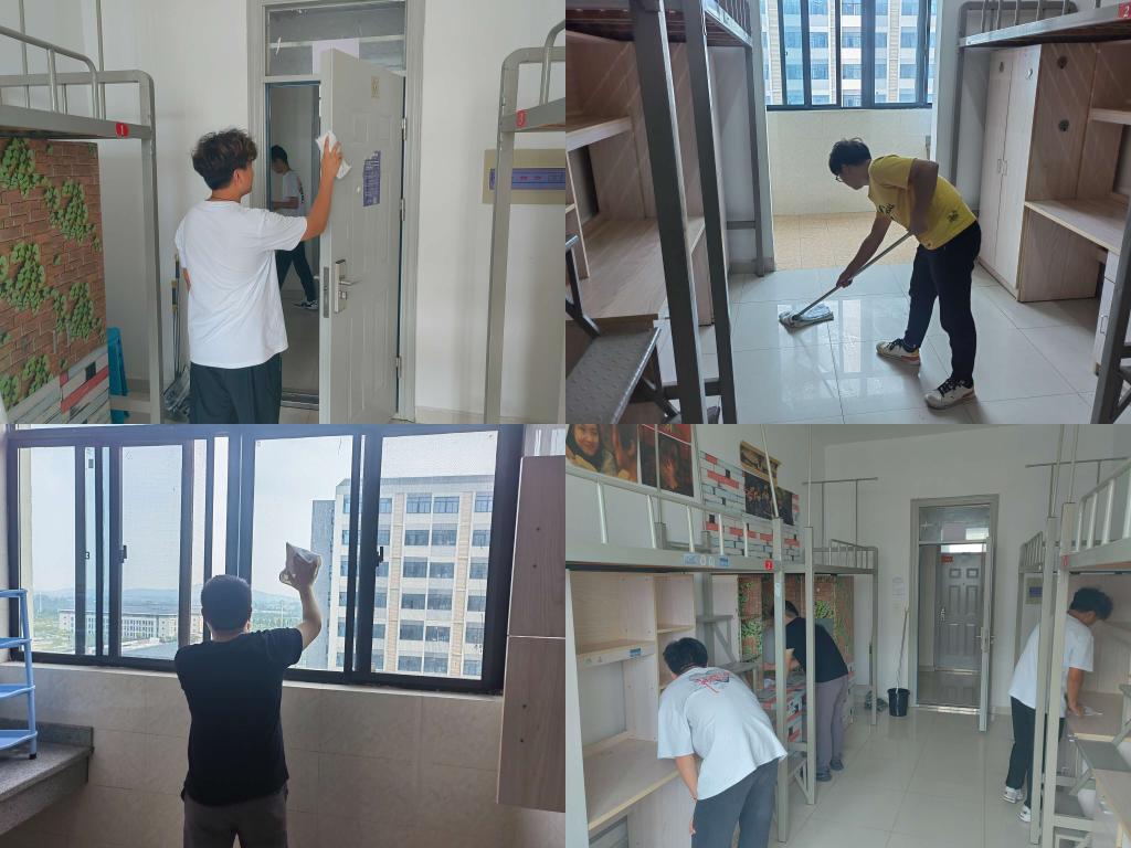 打扫过程中,各党支部成员分工明确,以小组为单位承担每一间新生宿舍的清洁工作。党员同志们纷纷争当先锋、做表率,党员同志们自带清洁工具,擦窗户、桌椅,拖地板、走廊等,积极主动地清扫着宿舍的每一处角落,认真排查宿舍内设施是否完好,是否存在的安全隐患等问题,并做好记录及时上报。
