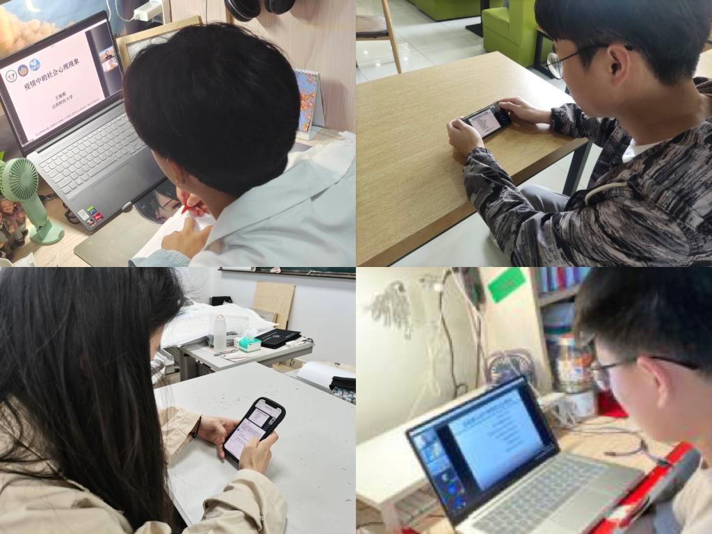 此次公益讲座以线上形式开展,会前,各班心理委员在班群里积极转发链接,引导同学们积极观看学习。讲座中,由各专家老师系统地讲解了疫情下常见的心理反应,结合真实案例给出心理调适策略,引导同学们关注自我,规律休息,管理时间;加强沟通,获得支持;管理情绪,科学应对。随后从自我意识、情绪管理以及应对压力等方面进行讲解辅导,积极引导同学们保持心理健康,平稳度“疫”。