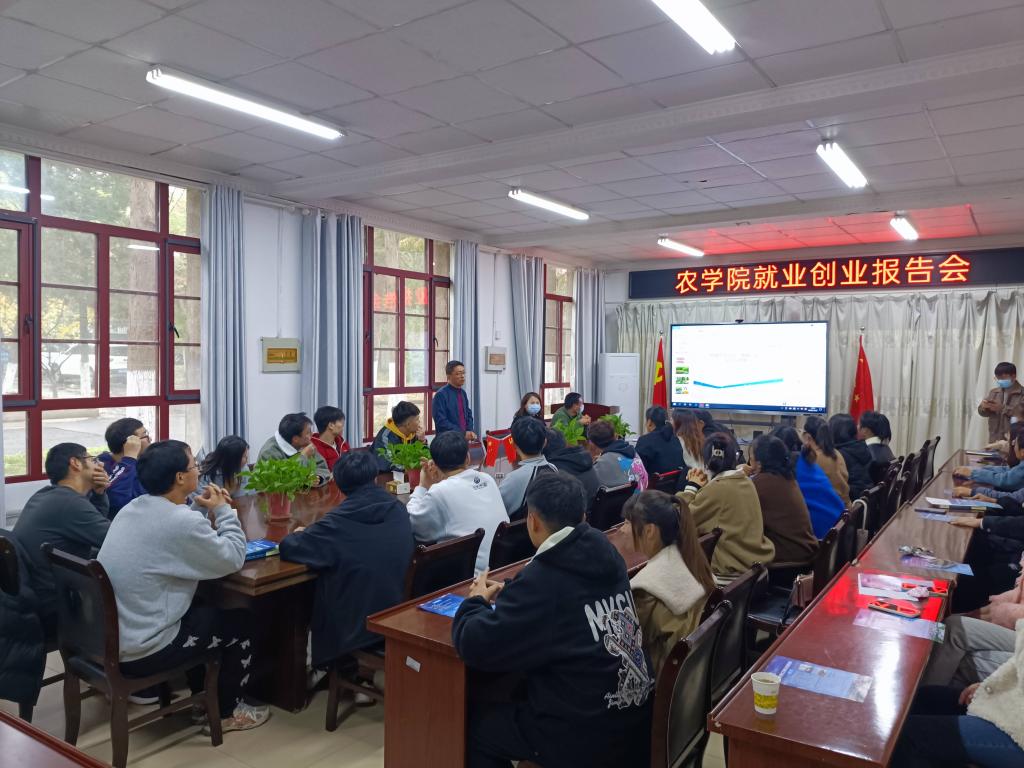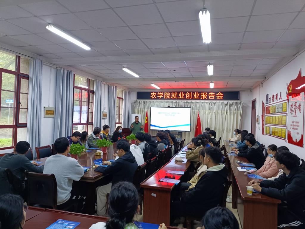 11月17日上午10点,农学院在会议室举行创业就业报告会。安徽华星化工有限公司人力资源部副部长王娟、制剂贸易部副部长鲍伟应邀担任主讲。报告会由农学院党委副书记张轶辉主持,2023届本科、研究生毕业生50余人参加报告会。