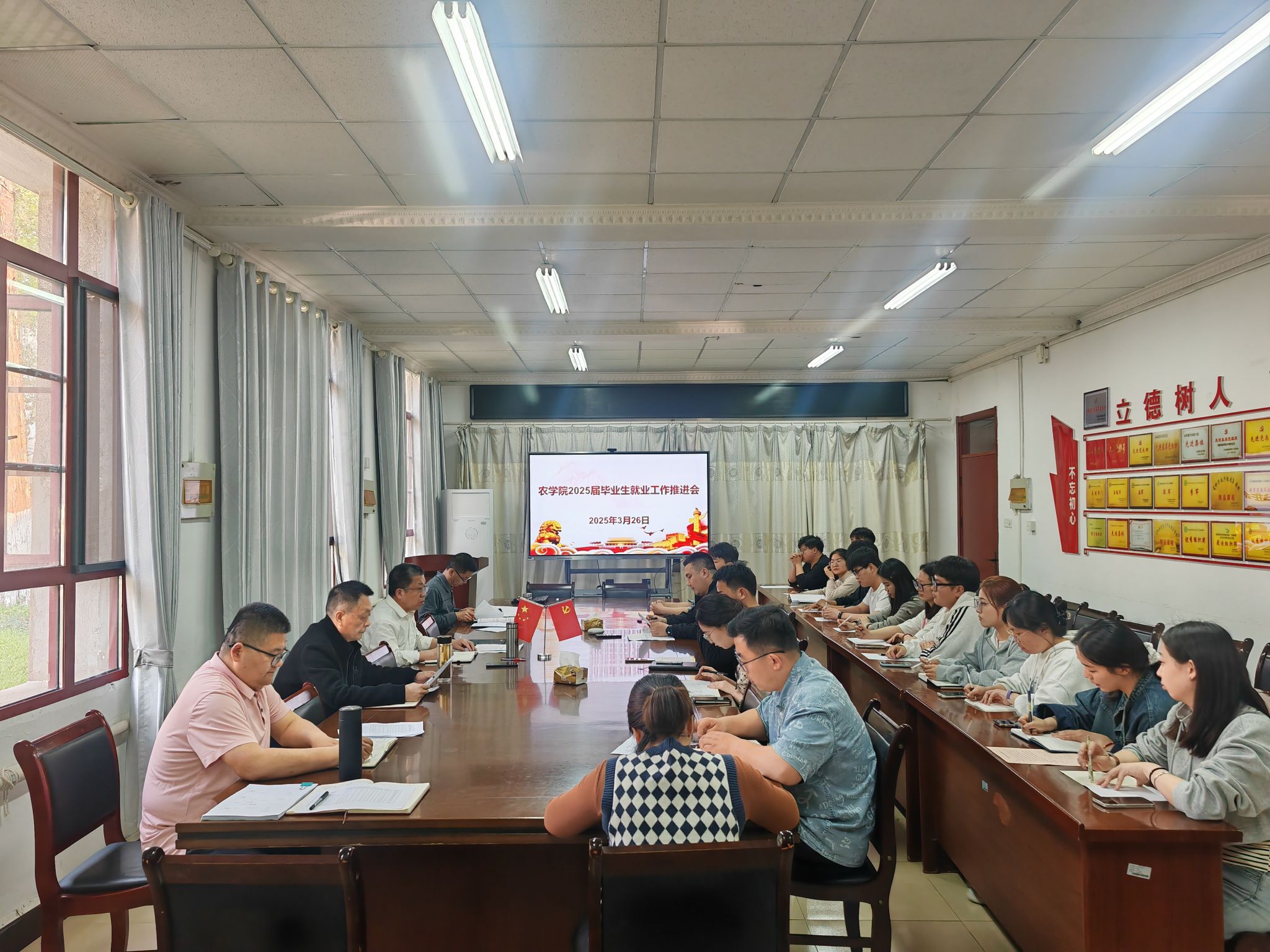 3月26日下午,农学院在学院会议室召开2025届毕业生就业工作推进会。学院党政领导、专兼职辅导员及各毕业班就业联系人参加会议,会议由农学院党委书记何世潮主持。