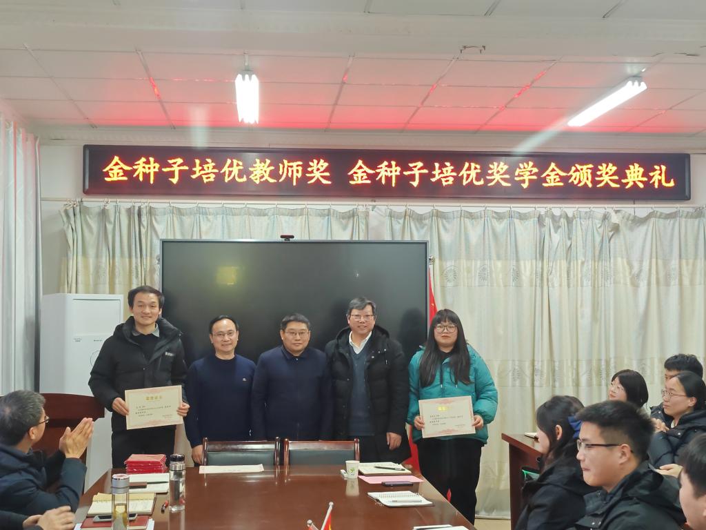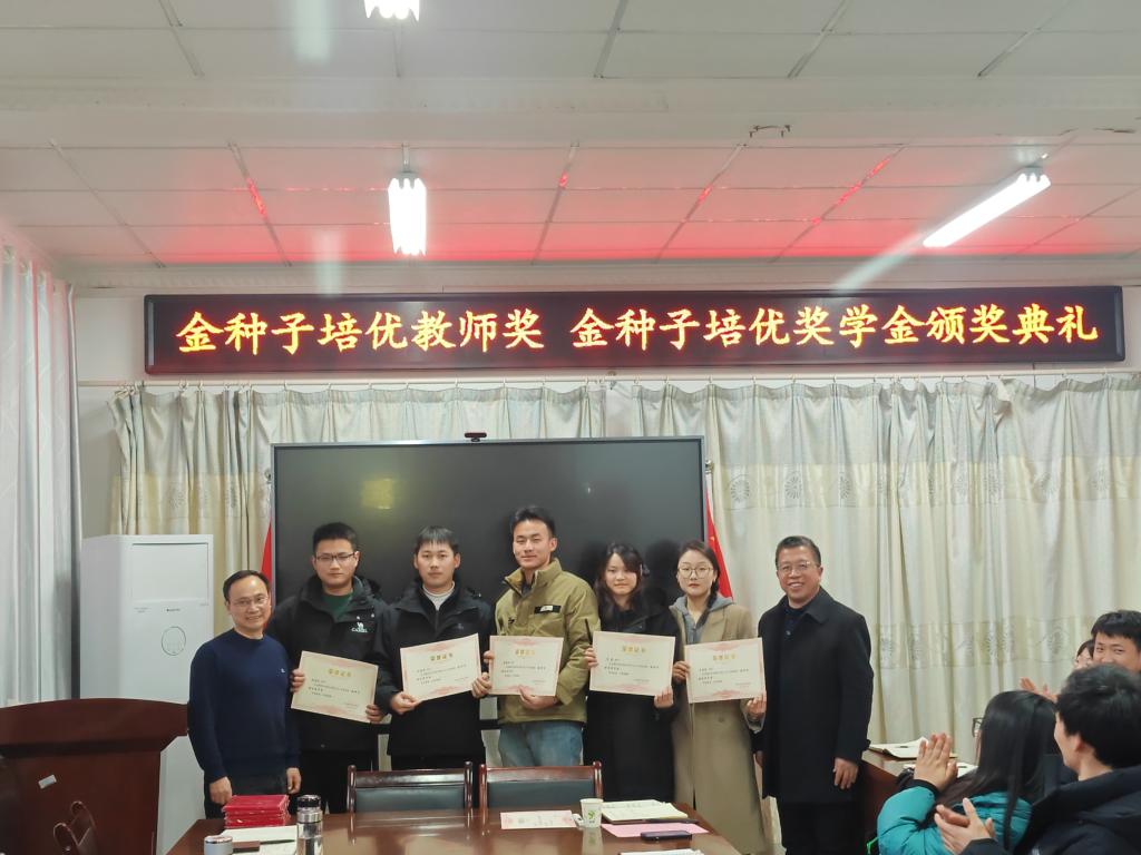 1月11日下午,“金种子培优基金”2023年度“金种子培优奖学金”“金种子培优教师奖”颁奖仪式在农学院会议室隆重举行。学校党委委员、副院长李升和,上海景领投资管理有限公司合伙人、基金发起者黄宪先生,二级教授、基金发起者农学院黄先忠老师,农学院党委书记何世潮,副书记张轶辉,副院长舒英杰和李文阳以及教师代表和学生代表出席颁奖仪式。根据《博业体育(中国)官方网站-登录入口农学院“金种子培优基金”申报细则》和申报人申请,经“金种子培优基金”评审委员会评审,李瑞宁、艾昊两位青年教师荣获金种子培优教师奖,孙张论、李婷、杜孟祥、杨德坤和王静婷五位农艺与种业专业研究生荣获金种子培优奖学金。颁奖仪式由农学院党委副书记、院长崔广荣主持。