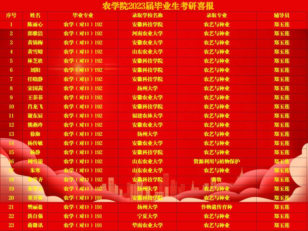 农学院2023届毕业生考研喜报