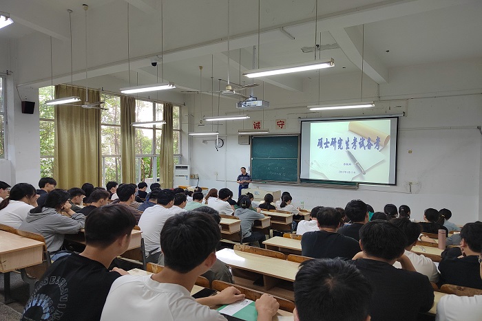 会上,张轶辉借助PPT从形势分析、考试安排、报名报考、复习备考、几点忠告等几个方面阐述。张轶辉回顾了近三年农学院学生考研基本情况,用生动平实的语言带领同学们分析了考研形势,建议同学们分析个人实际,尽快确定报考院校,持之以恒复习备考,坚持到底。张轶辉还介绍了各科目复习、心理调适、团结协作等方法。
