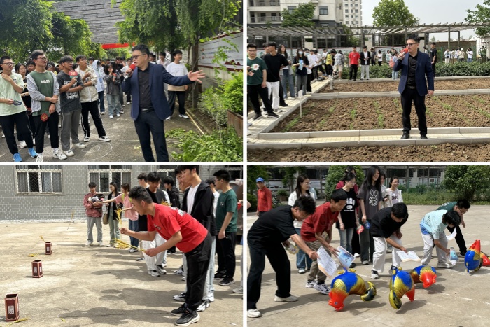 丰富教育形式,弘扬农耕文化为进一步传承和弘扬农耕文化,让学生体验农事民俗、感悟劳动乐趣,厚植学农、知农、爱农情怀。5月12日,学院在西区农场举办了第二届农耕文化节。期间,农学院副院长舒英杰带领同学们参观了农耕文化墙、作物认知圃,并解读了中国农耕文化发展史。同学们参加了“抛秧投壶”、“农场游戏接力”、“赶鸡入笼”、“一二三木头人之运送粮食”等农耕趣味游戏,展示农耕文化的丰富内涵,增强了学生知农爱农、学农为农、强农兴农的意识。