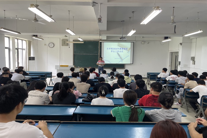 张轶辉向全体留校学生提出几点要求,一是要坚守留校考研和做实验的初心,有目标有计划地完成备考任务和实验任务;二是要严格遵守学校和学院各项关于暑期留校管理规定,严格请销假,认真执行晚点名制度,坚持非必要不外出;三是切实提高安全防范意识,自觉提升人身安全、财产安全、饮食安全、交通安全,自觉反电诈和防溺水,不断提升自我安全防范能力。张轶辉还做了研究生复习备考辅导报告,张轶辉从“定专业、明方向,做规划、重落实,互督促、找状态,脚踏实地、点滴累积”几个方面号召同学们认真复习备考。张涛介绍了暑期晚点名签到程序要求以及自习室座位预约等。
