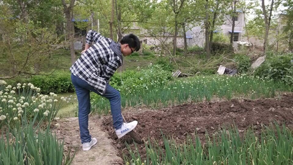 最后一户慰问对象是柳柄厚老人家,老人家如今已81岁高龄,独自一人居住在两间土房里,屋内狭小简陋,好在老人家身子骨还算硬朗,平常种些瓜果蔬菜,主要经济来源是靠政府每月的补贴。来到柳爷爷家时,他刚从门前的菜园出来,一位志愿者见状便立即跑到菜园,拿起铁锹便松起土来,老人见后又惊又喜,随后便向志愿者们介绍他的菜园,话语中满是激动与欣喜。