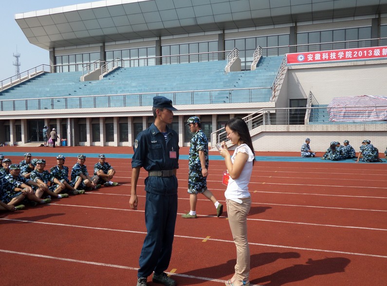 带领新生军训的是解放军海军蚌埠士官学校的军人们,他们当中有的还很年轻,但不论年龄大小,他们所展现出来的军人气质都一样值得我们赞叹和歌颂的。军训中,记者采访了人文学院连队的一位教官,他告诉记者:“同学们表现很好,训练很积极,身心素质都不错,能带这些他们军训感到很荣幸,希望能够和他们一同经历这段难忘的人生旅途,我将尽职尽责”听到这一席话,对这些默默奉献的教官们满怀敬佩和感激之情。他们坚守职责,无畏艰辛的军人品质将对这批学员产生深远持久的影响。让我们发自内心的对他们说一声:谢谢你们,你们辛苦了!