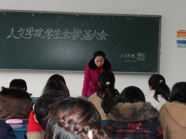 3月13日下午,人文学院学生会换届大会在新知楼A109举行。党总支秘书兼团总支书记李月月,辅导员黄钦海和学生会全体新老成员参加了大会。黄钦海担任大会主持。