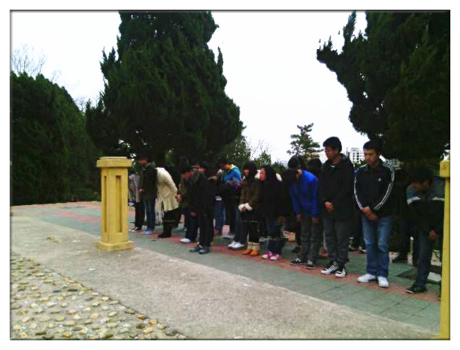 活动在悲昂壮烈哀乐葬礼曲中拉开序幕。首先向烈士们敬献鲜花,然后由班级团支书张斯雯向烈士念祭奠词,深切缅怀为中国事业献身的英烈,祭奠词念完,全体同学庄严肃穆的低头默哀一分钟并三鞠躬,随后班长吴光斌带领同学们在纪念碑前庄严宣誓,誓做“当代优秀学子,今天报国青年”。最后,同学们有序的瞻仰了人们英雄纪念碑。