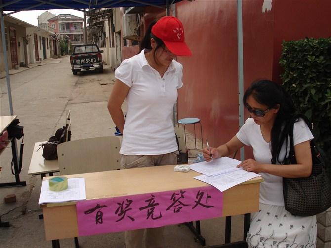 通过发放社区交通安全宣传册,进行社区有奖问卷调查等方式,向居民们细致地介绍了常见的交通法规知识。《道路安全法》相关规定、《安徽省2102年交通事故人身损害赔偿标准》等常用的法律法规也载明在宣传册中。问卷调查设置了居民可能遇到的交通问题,对改善传统社区交通秩序,有着积极的矫正意义。另外,对于居民们提出的问题和法律事务,同学也相应做出了详细的解答,并为居民提供了一些法律意见。