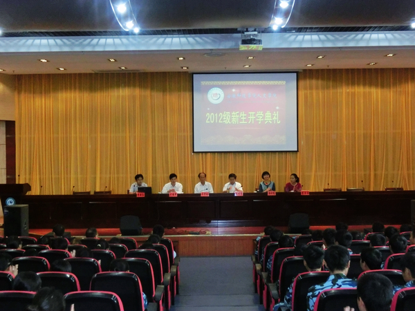 在高亢激昂的《中华人民共和国国歌》声中,大会拉开了序幕。吴贵春代表全院师生员工对2012级211名新生的到来表示热烈的欢迎。对人文学院的建院历史、师资概况、科研实力及学风建设等方面做了详尽的介绍,在最后,吴贵春对刚入校的新同学们提出了三点殷切希望:第一,新起点新环境,尽早确立新目标;第二,多实践多积累,提升自身综合能力;第三,爱集体爱他人,积极融入大学生活。