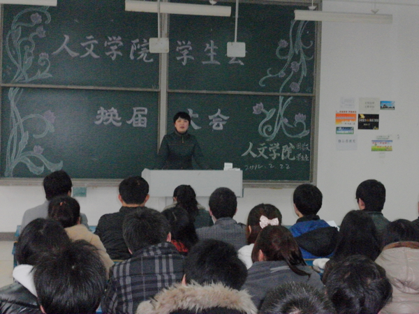 2月22日下午,人文学院学生会在新知楼A108举行换届大会。人文学院党总支副书记杜士凤,党总支秘书、团总支副书记李月月以及辅导员黄钦海出席大会,学生会全体新老成员参加了本次换届大会。大会由学生会主席王耀华主持。