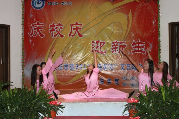 晚会在全体演职人员的集体舞蹈《快乐崇拜》中落下帷幕。短短两个小时,晚会回顾了学校历史,展望着学院未来。台上精彩连连,台下掌声阵阵,文法学院团总支学生会为2010年新生奉献了一场文艺大餐。