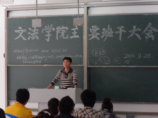 9月28日中午,文法学院在新知楼A102召开全院各班级主要学生干部会议布置近期工作。党总支副书记杜士凤出席会议并讲话,辅导员李沙娜、黄钦海,全院非毕业班班长、团支书和学习委员参加会议。