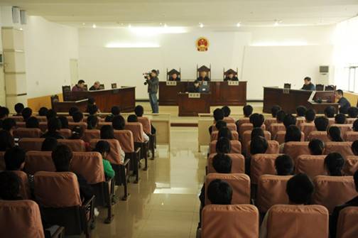 10月12日上午8点30分,文法学院09级法学专业108名同学在王镭、骆绪刚和管启飞老师的带领下来到蚌埠市中级人民法院观摩庭审。庭审之前,民庭负责人向同学们详细地介绍了民事诉讼具体过程及蚌埠市法院的相关情况。随后进行了案件审理,整个庭审持续了2个多小时。
