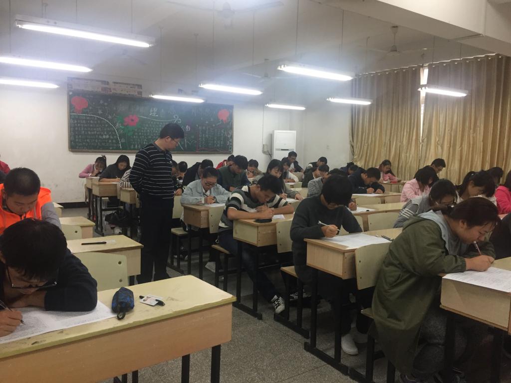 10月22日上午8时,《学生手册》考试在求知楼A楼的六个教室准时开始,监考人员全部由学生会干部担任。人文学院党总支副书记王伟,党总支秘书、分团委书记李月月,正科级辅导员李沙娜,2016级兼职辅导员郭静亲临考场进行巡考。