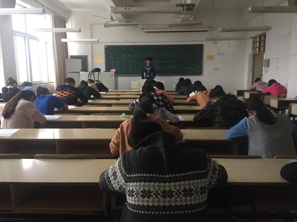 为督促大一新生尽快熟悉有关的学生管理制度和各种资助、奖惩政策,引导新同学们进一步增强遵守校规校纪意识,人文学院利用周末时间对全体2016级新生进行了《学生手册》考试。