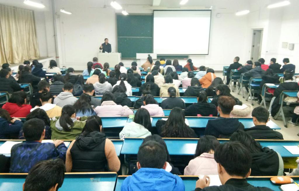 11月29日下午,人文学院在新知楼B503教室举办人际交往知识讲座。讲座由人文学院汉语言文学教研室主任姚大怀主讲。2017级全体新生聆听了讲座。