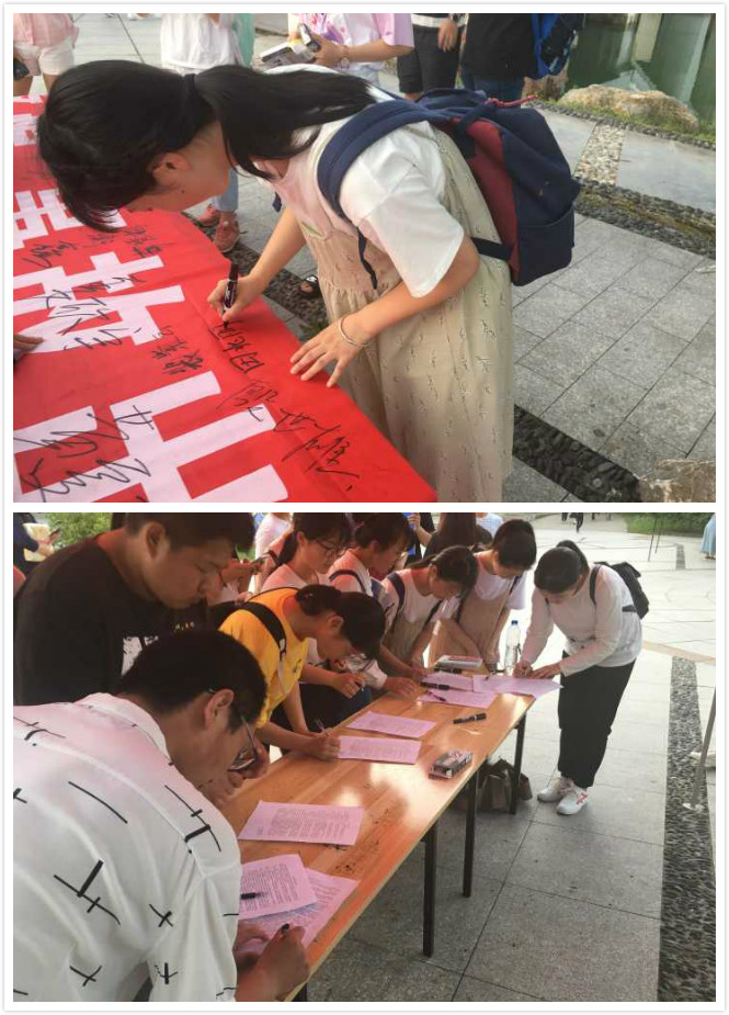 为了进一步提升师生的安全意识和防范能力,着力营造和谐稳定的校园环境,打造平安校园,5月17日晚,人文学院于西区天桥下举行了“校园安全,人人有责”联名签字活动。